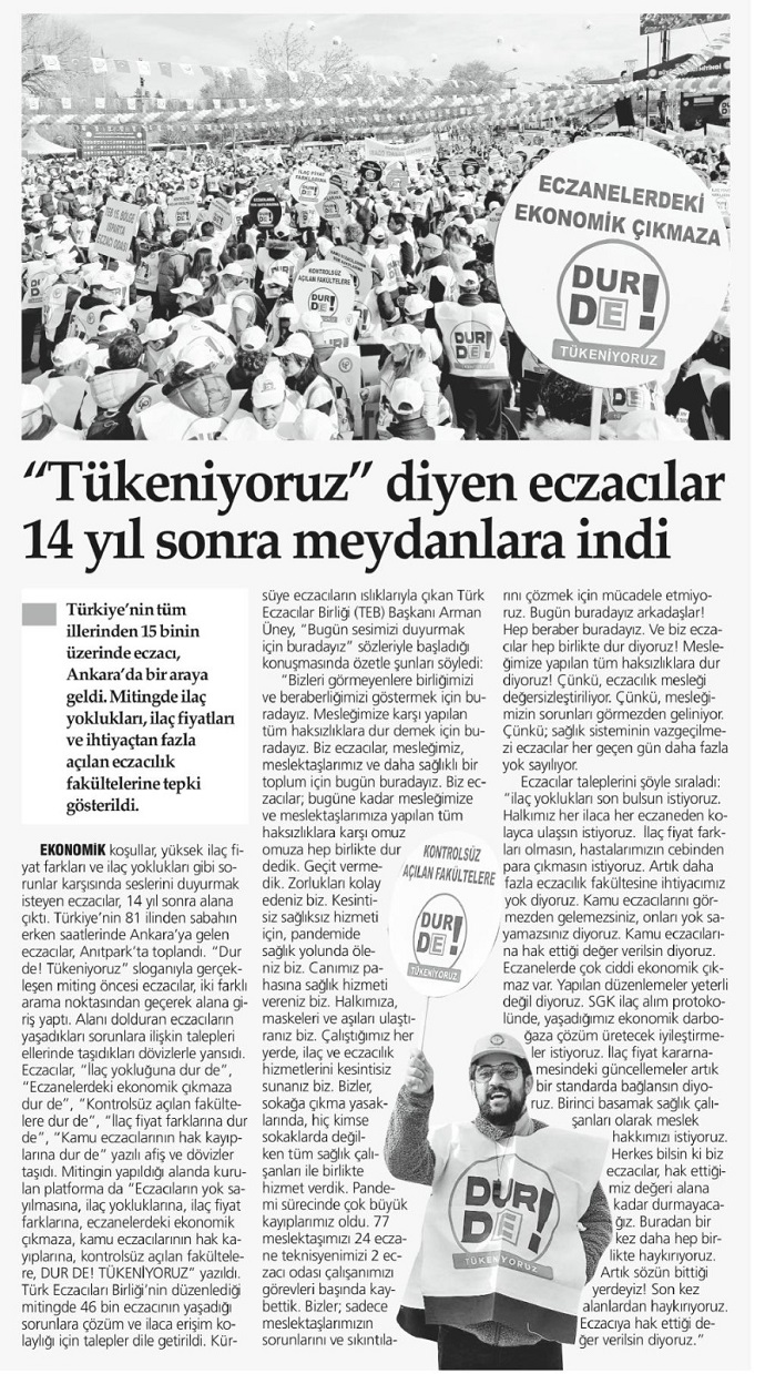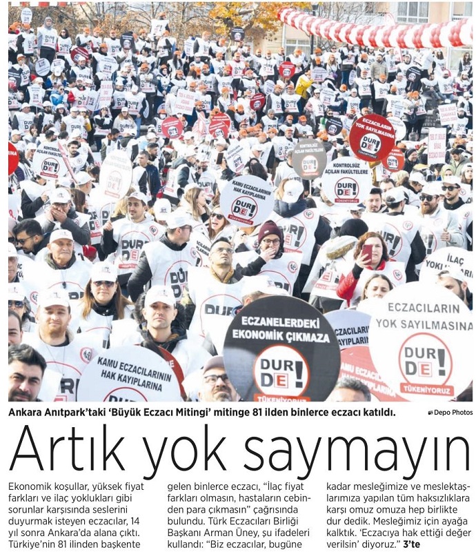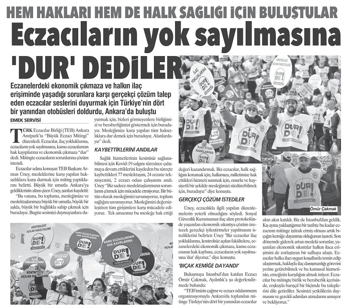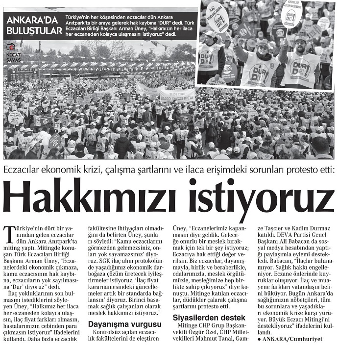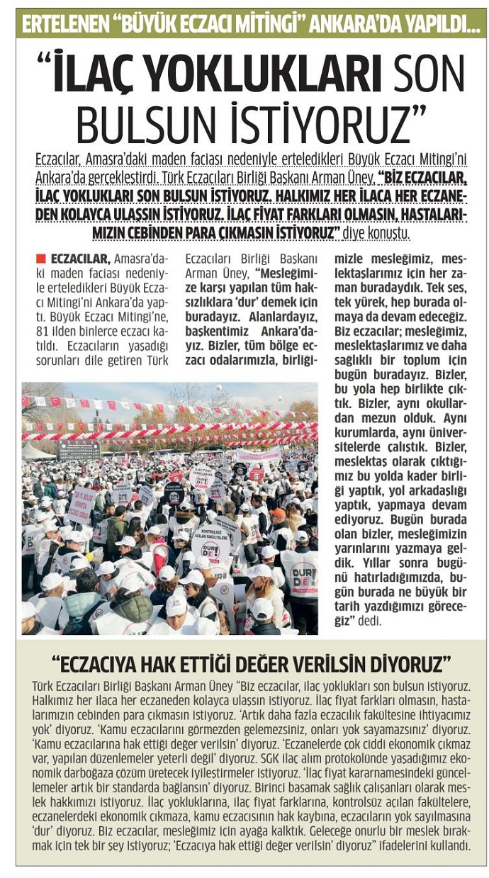 27 KASIM BÜYÜK ECZACI MİTİNGİMİZ YAZILI VE GÖRSEL BASINDA GENİŞ YER BULDU